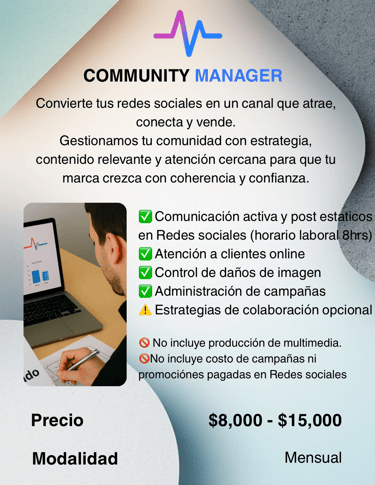 Te entregamos de 8 a 12 piezas al mes con plantillas editables y un manual básico.