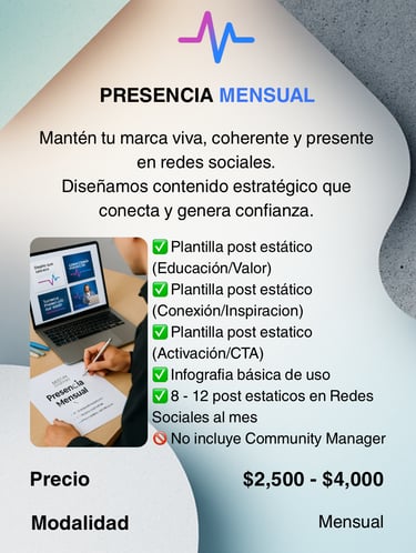 Desde tu identidad visual hasta tu presencia digital completa, te acompañamos con claridad, estrategia y ritmo.